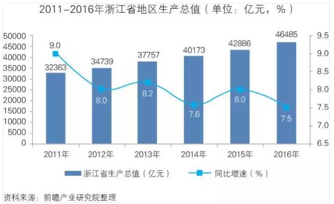 浙江省是国家经济大省,拥有较强的经济实力,据2016浙江省国民经济和社会发展统计公报显示,浙江省全年人均GDP为83538元元,增速为6.7%,为消费提供了强大的基础。